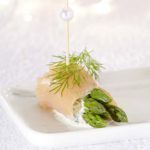 Een schitterend feestmenu, deel 1: de hapjes.Zalmhapje met groene asperge en dilleroom: Ingrediënten: 6 sneetjes gerookte zalm 200 gram groene aspergepunten 1/2 plantje dille 2 eetlepels zure room peper en zout Bereiding: Kook de aspergepunten 3…