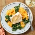 Leg een stuk vis met tomatensaus op elk bord. Serveer met een ricotta-aardappel.