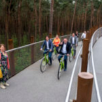 Vanmiddag werd een gloednieuw fietspad geopend dat je dwars door het water voert. Het traject ligt op het fietsroutenetwerk bij knooppunt 91 in Bokrijk en doorkruist de vijvers van de Wijers. “Dit fietspad is het eerste in een reeks van innovatieve fietsprojecten voor meer beleving van de unieke Limburgse landschappen langs het fietsroutenetwerk. In de nabije toekomst creëert Toerisme Limburg onder meer ook fietsbelevingen onder de grond en door het Nationaal Park Hoge Kempen. “Met deze nieuwe belevingen tonen we dat Limburg blijft innoveren in toerisme”, zegt Igor Philtjens, gedeputeerde van Toerisme, Cultuur en Erfgoed en ook voorzitter van Toerisme Limburg en Bokrijk.